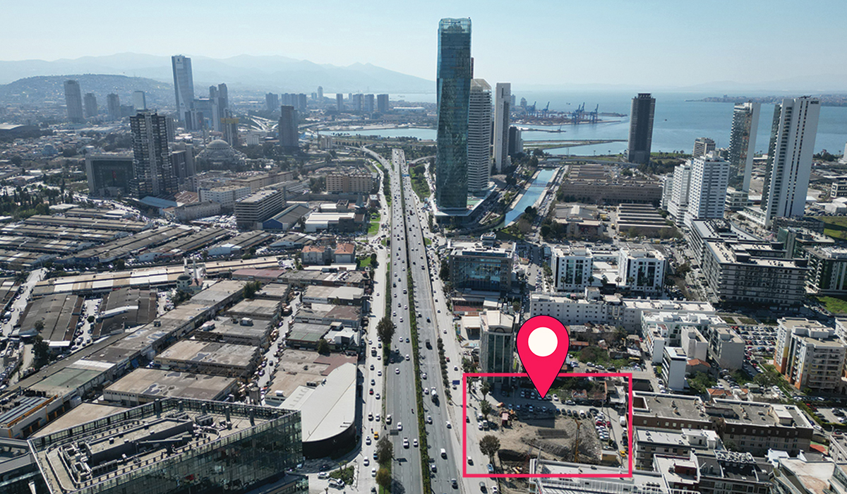 Bayraklı’nın en merkezi konumunda İzmir’in bütün şehirlere bağlantı noktası olan Ankara Caddesi’nde yer alıyor. Tüm adliye binalarına, tapu dairelerine, restoran ve kafelere yürüyerek 5 dakika mesafede.